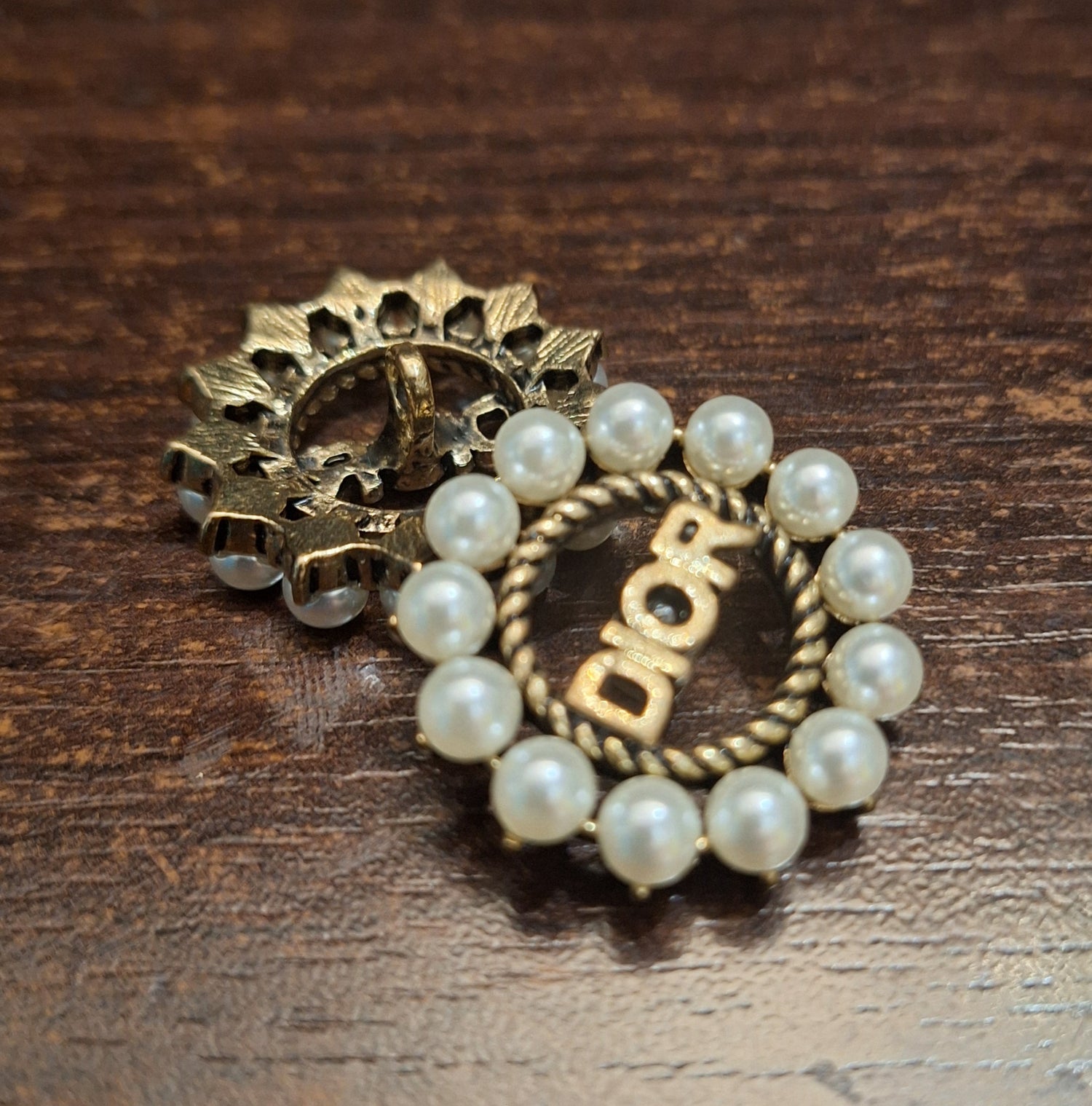 Buttons old gold and pearls. 1 pieces. 28 mm