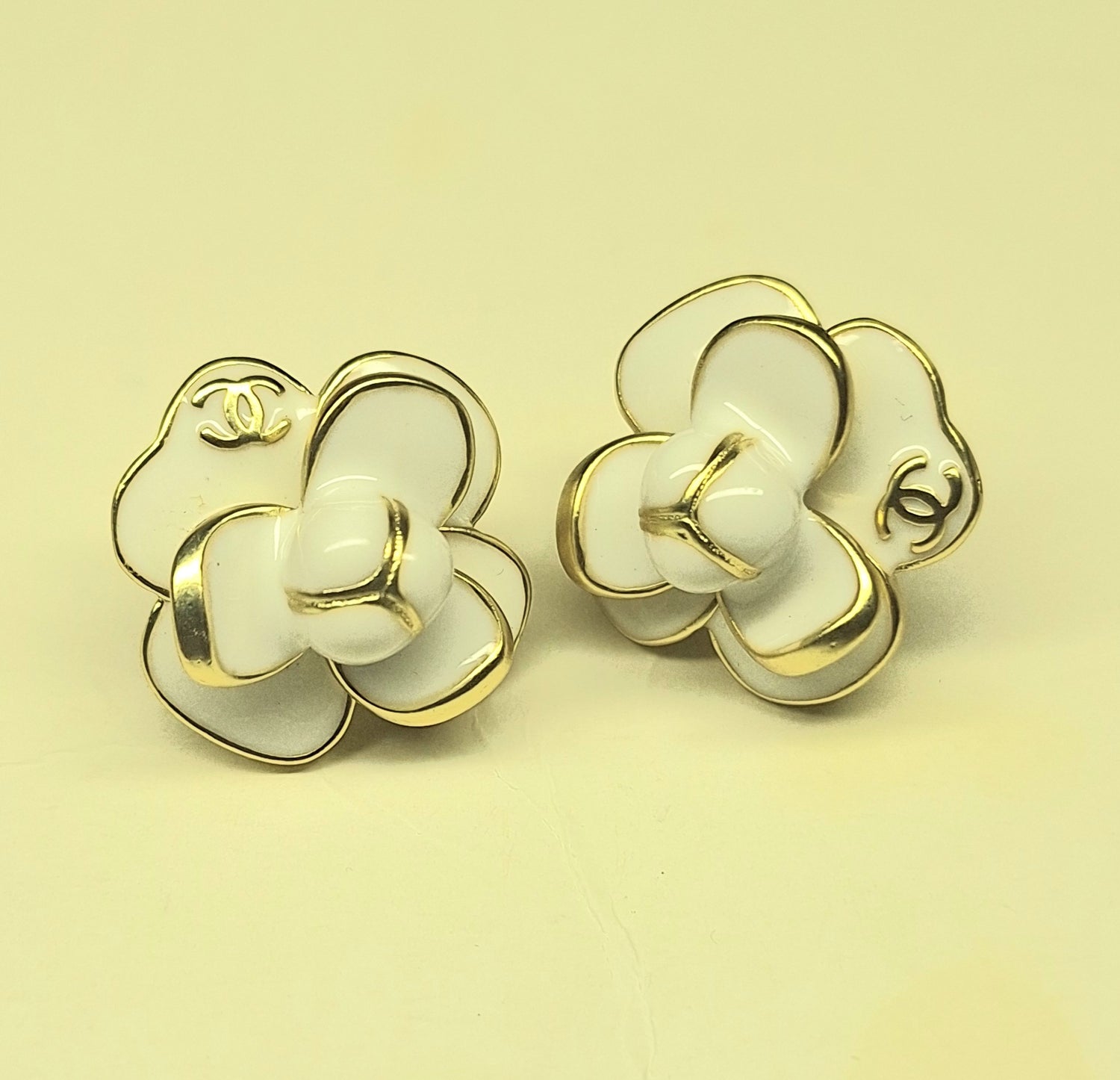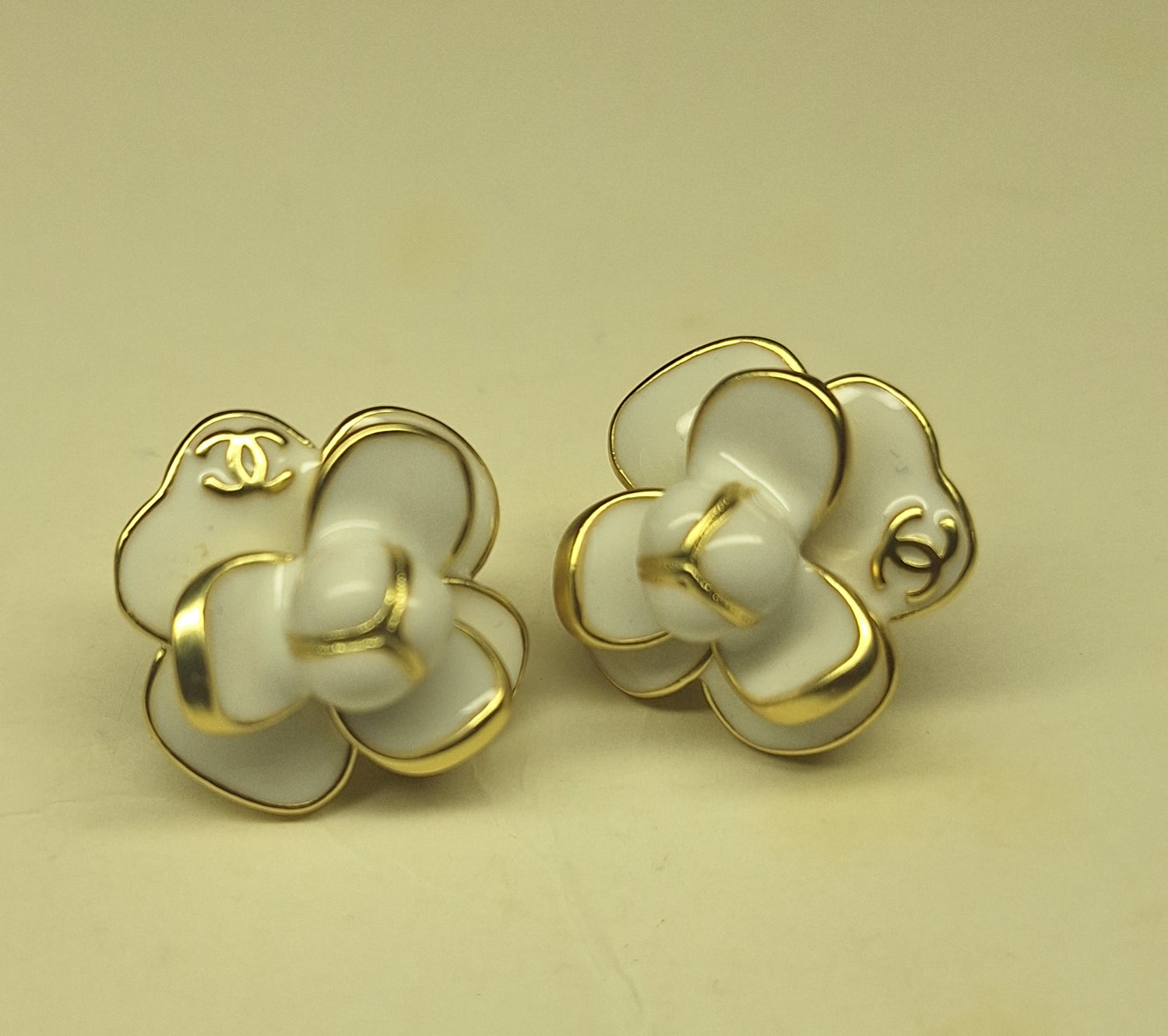 Earrings gold,white enemal, stamped. 20 mm